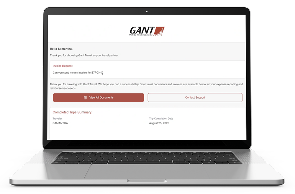 The Gant Gateway offers a simpler way for organizations to track down all Gant invoices for current and past itineraries. Even on mobile.